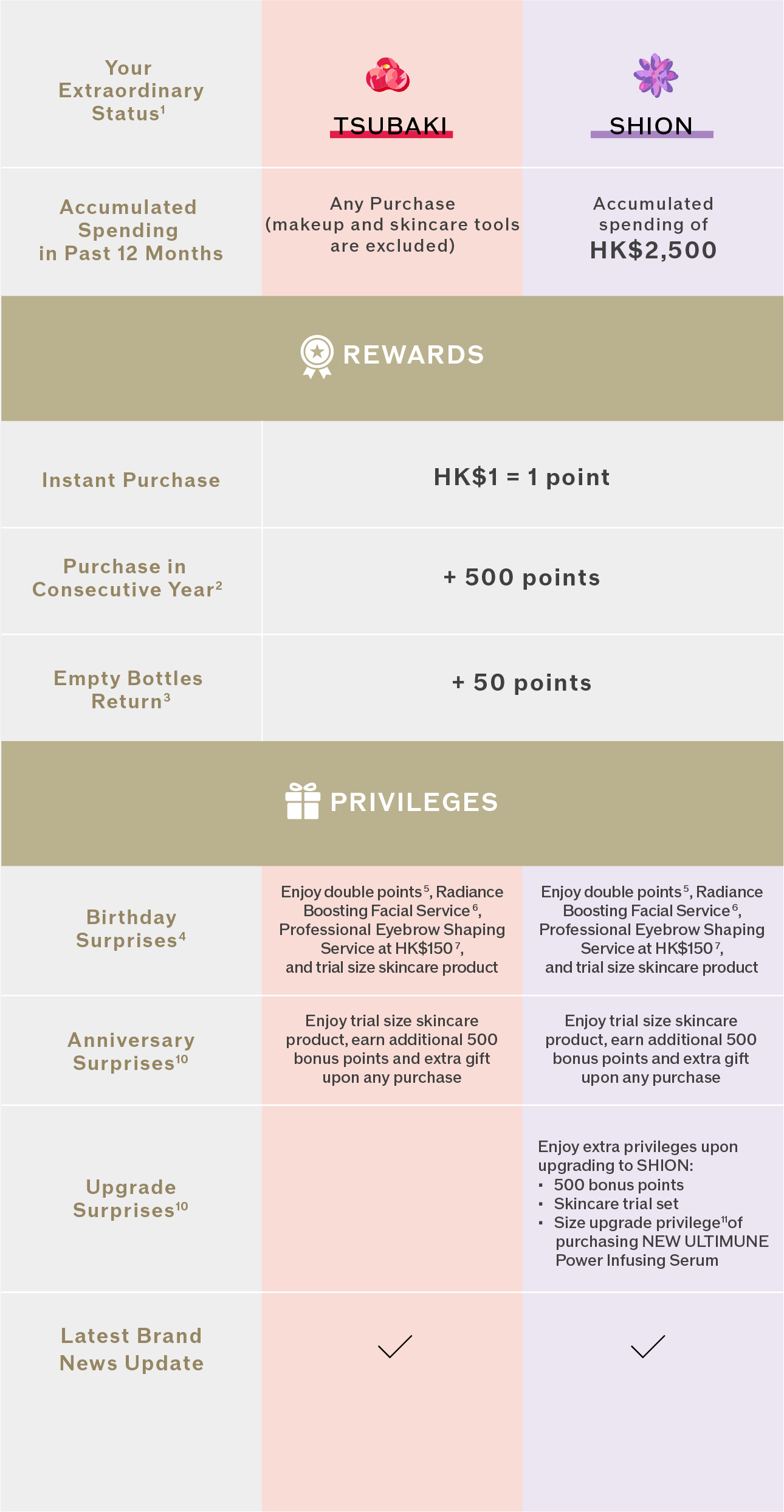4.All birthday surprises are valid in birthday month and can be enjoyed once during membership period. Complimentary product / sample and treatment can be redeemed at SHISEIDO shops, counters or Beauty Zone only.