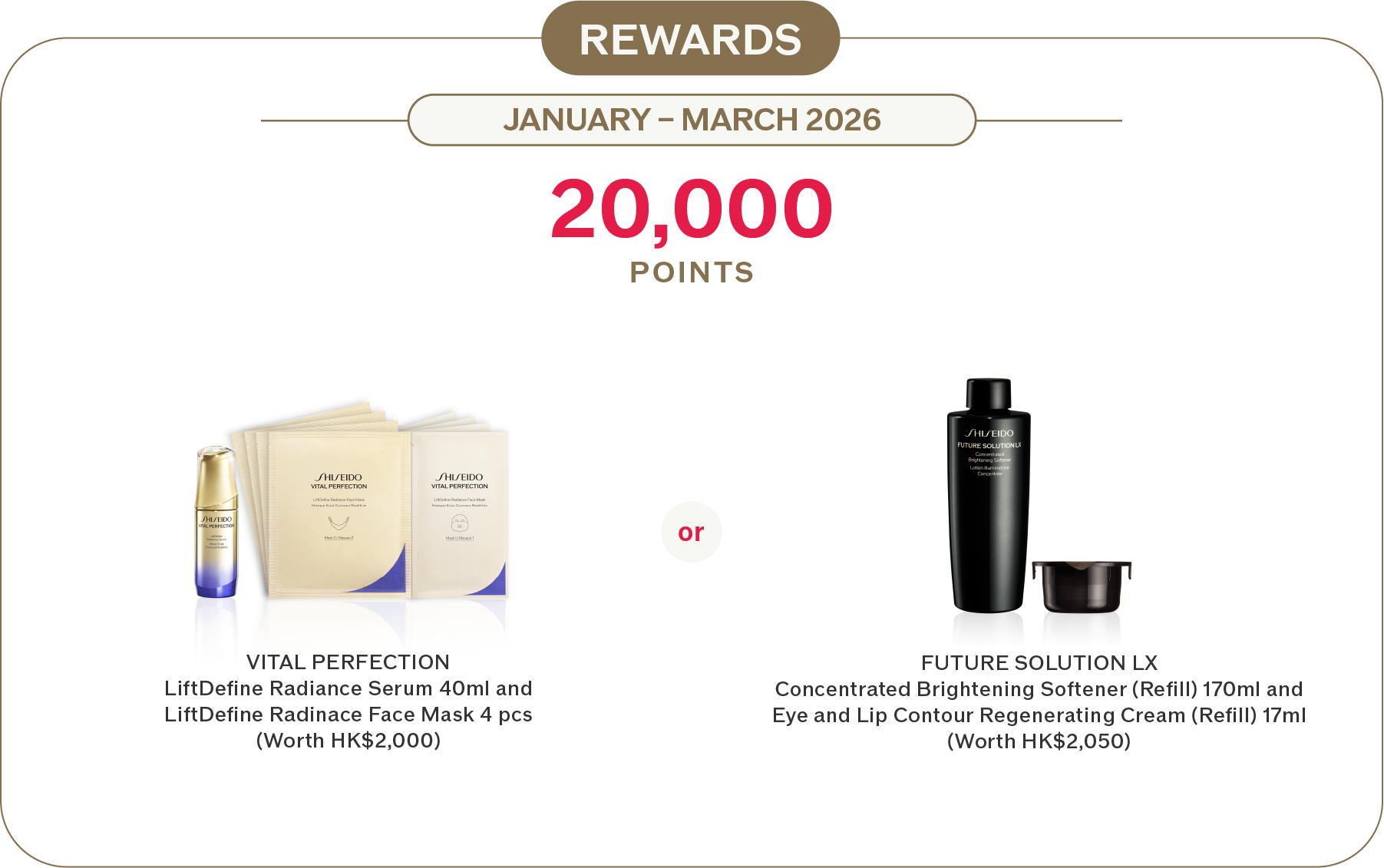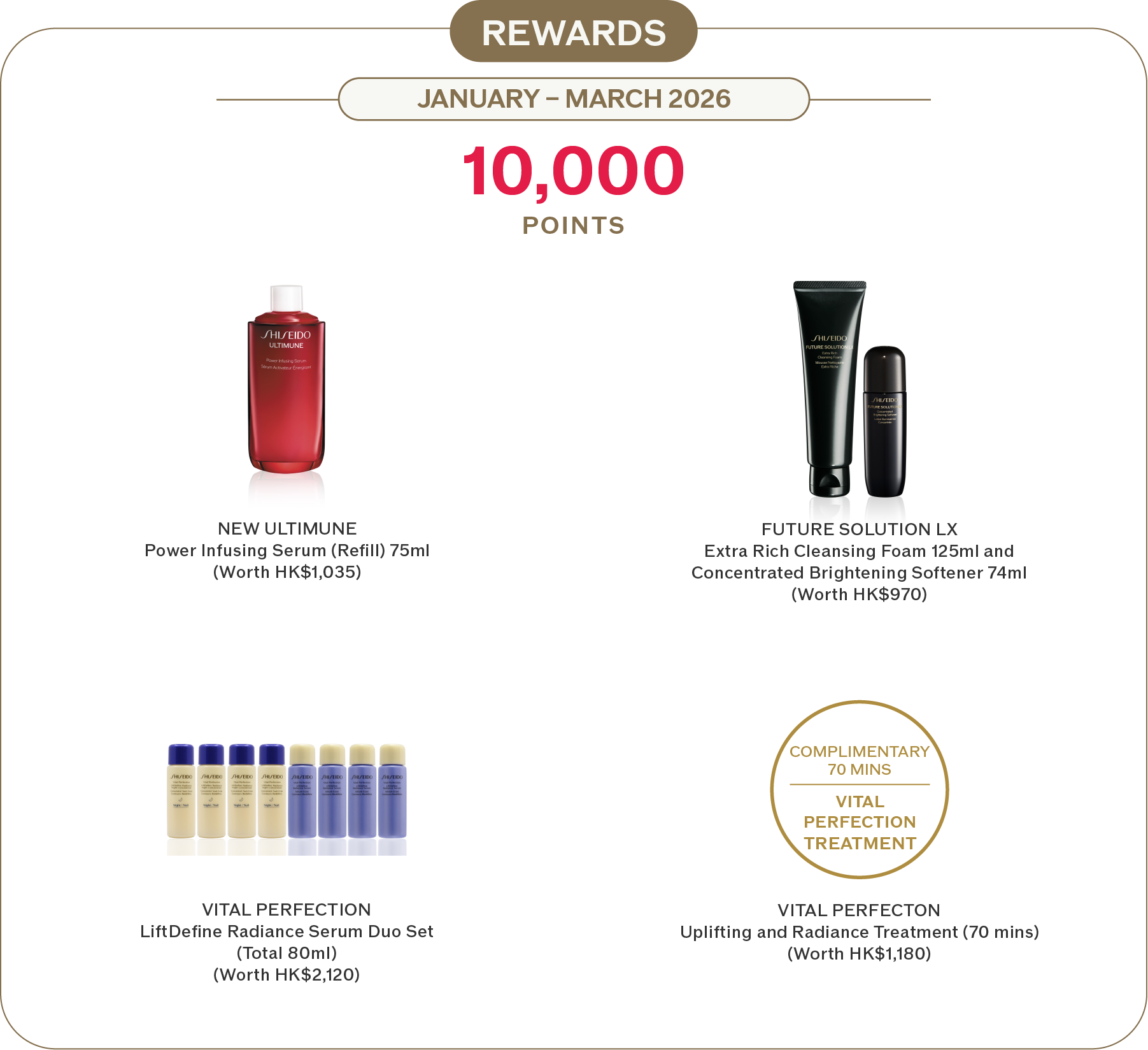 ‧Annual souvenir can only be redeemed by SHISEIDO’s members in person. Identity document (e.g. credit card) is required for gift redemption. Shiseido Hong Kong Ltd. reserves the right to verify the membership identification documents.