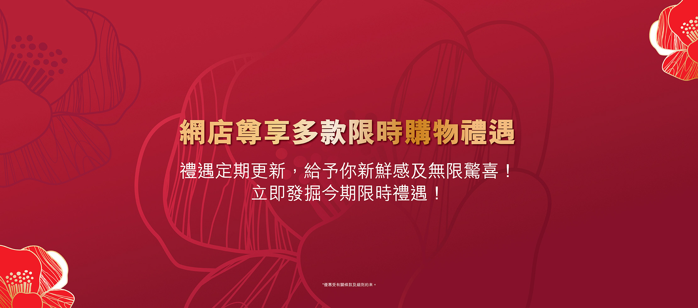 *每單限購乙套。數量有限,售完即止。禮遇中的組合為預設產品,均不能轉換;亦不得轉換為其他購物禮遇。圖片僅供參考,以實物為準。優惠期由即日起至 2026 年 2 月 28 日。以上優惠受有關條款及細則約束。