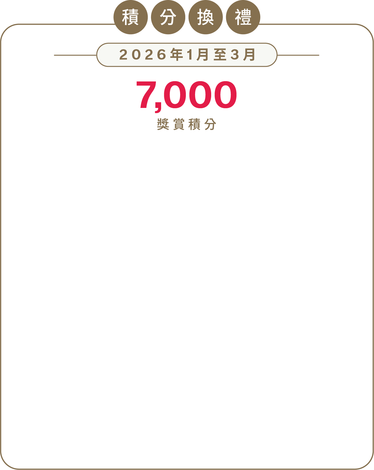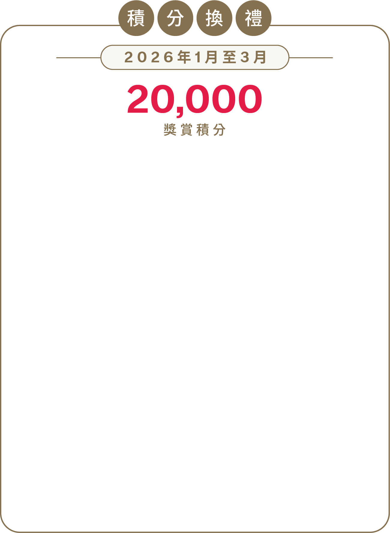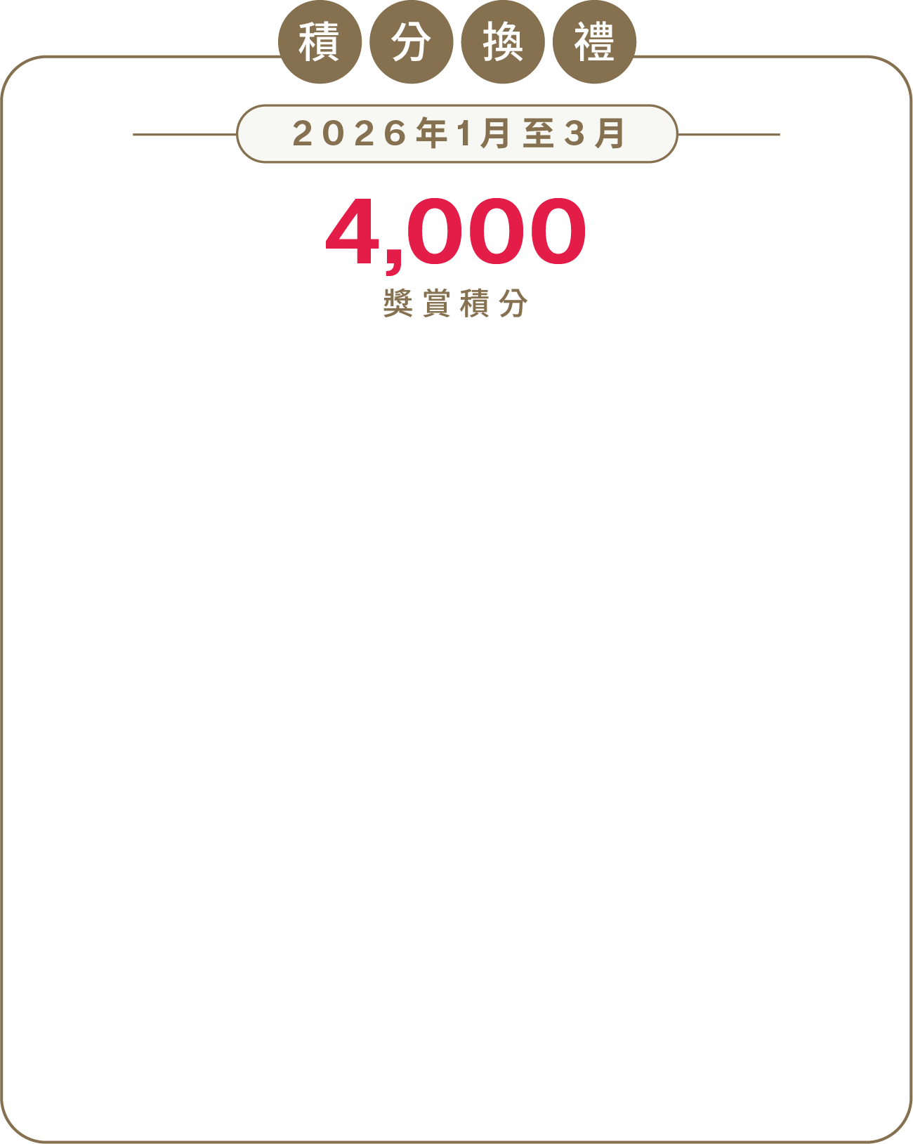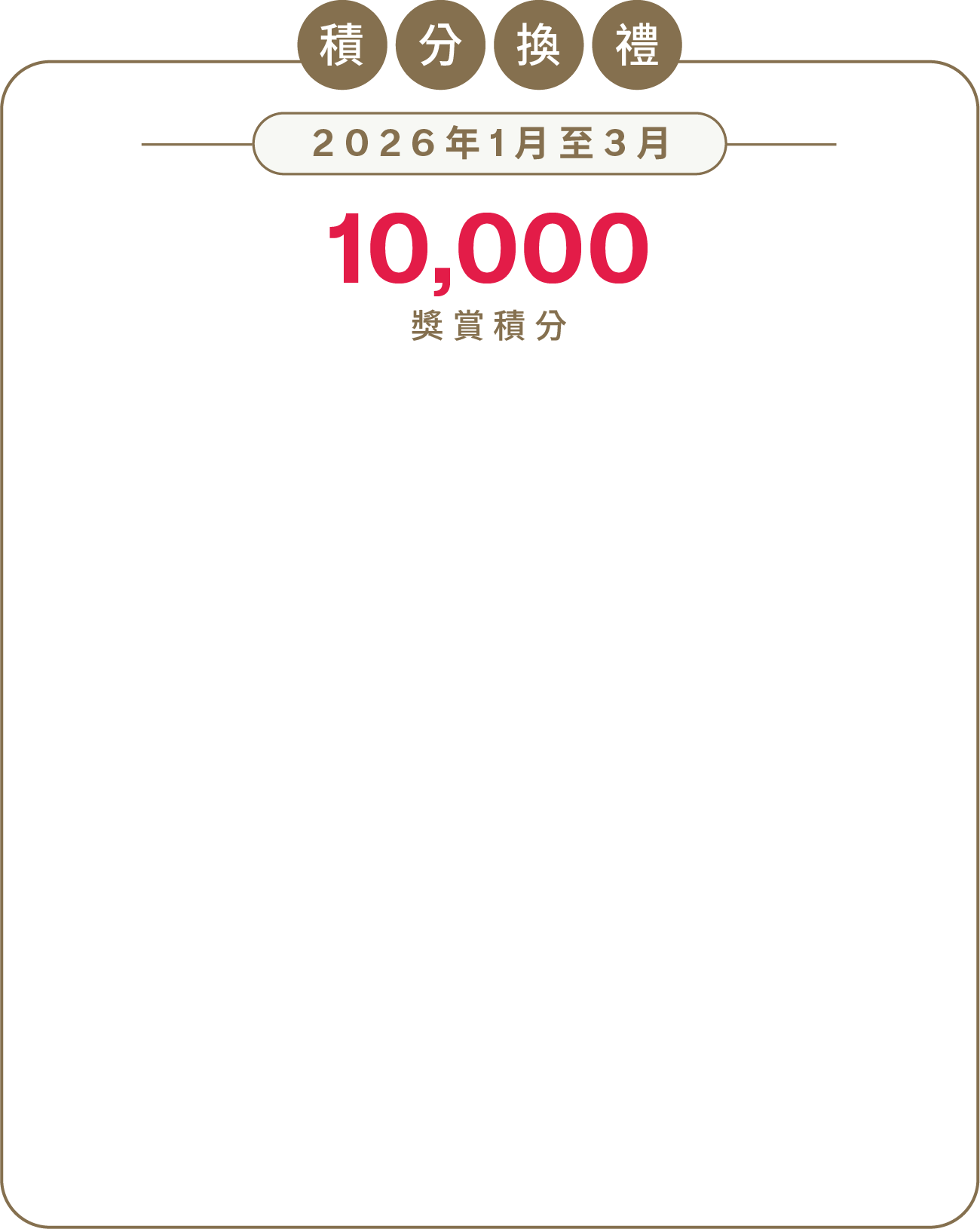 即可獲取1分獎賞積分,累積滿指定積分,可即時換領指定精選禮品,並尊享多項會員禮遇。
